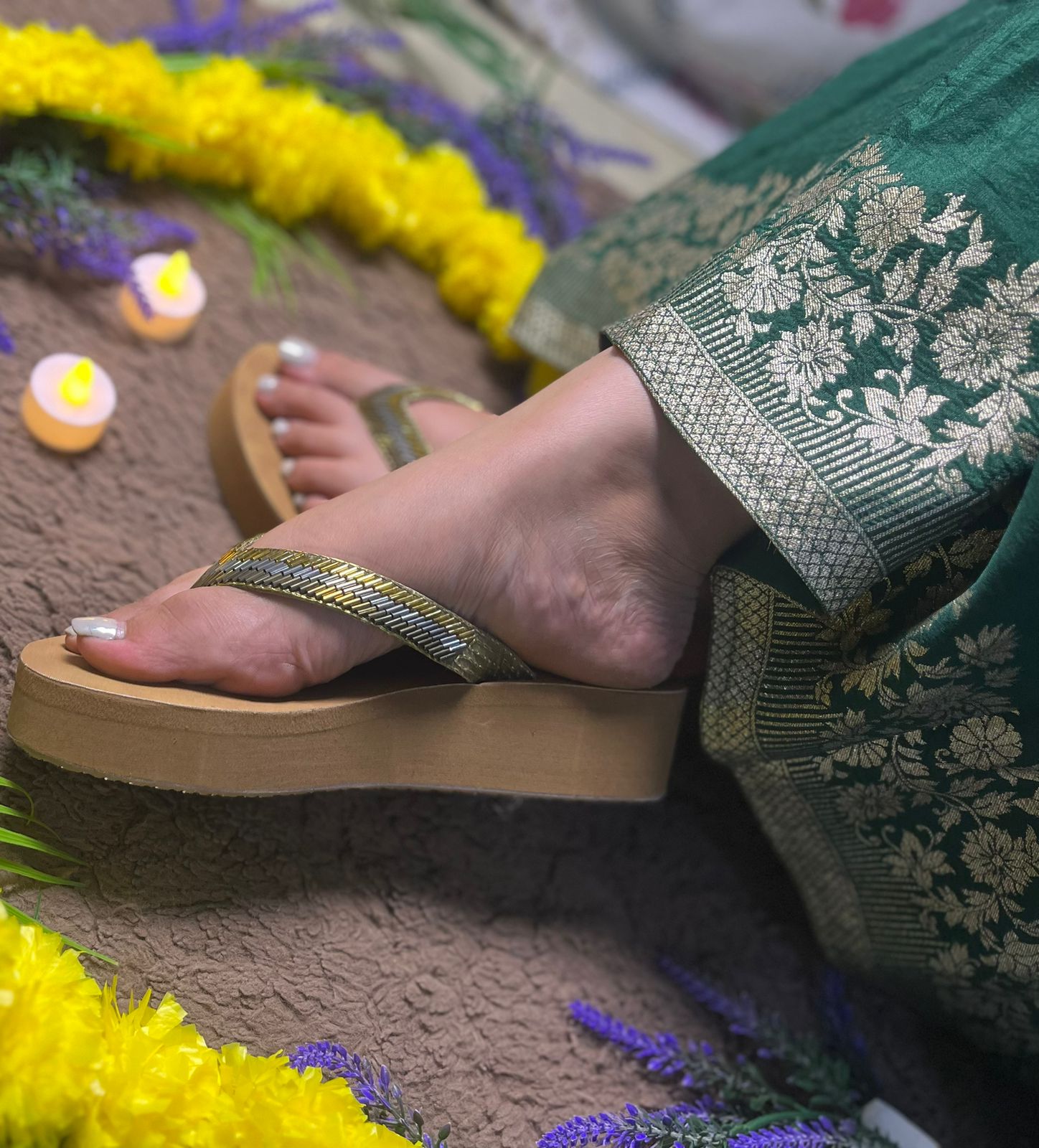 Elevate your style with the Golden Silver V-shape Wedges TT156, designed for both elegance and comfort. The distinctive V-shaped silhouette offers a modern, sophisticated look, while the golden silver finish adds a luxurious touch. Perfect for enhancing any outfit, these wedges provide stable support and effortless wear for extended hours. Ideal for occasions where you want to make a confident and refined impression.