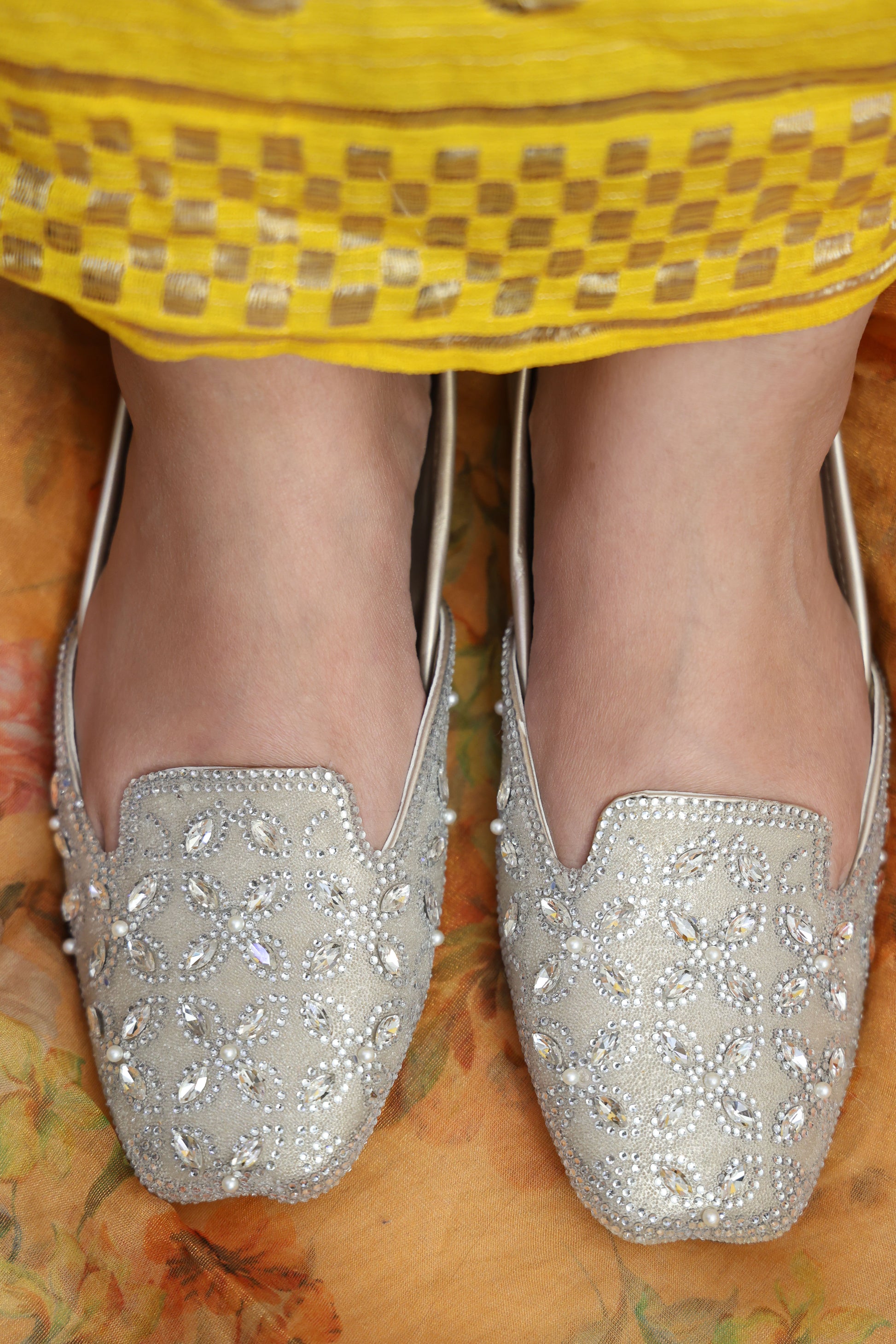 The Moonlit Grace Jutti TT116 blends traditional craftsmanship with refined elegance. Expertly handmade, this jutti features intricate embroidery and a comfortable fit, making it ideal for both festive occasions and daily wear. Its durable sole ensures longevity, while the breathable materials provide all-day comfort, perfectly complementing your ethnic wardrobe with a touch of timeless sophistication.