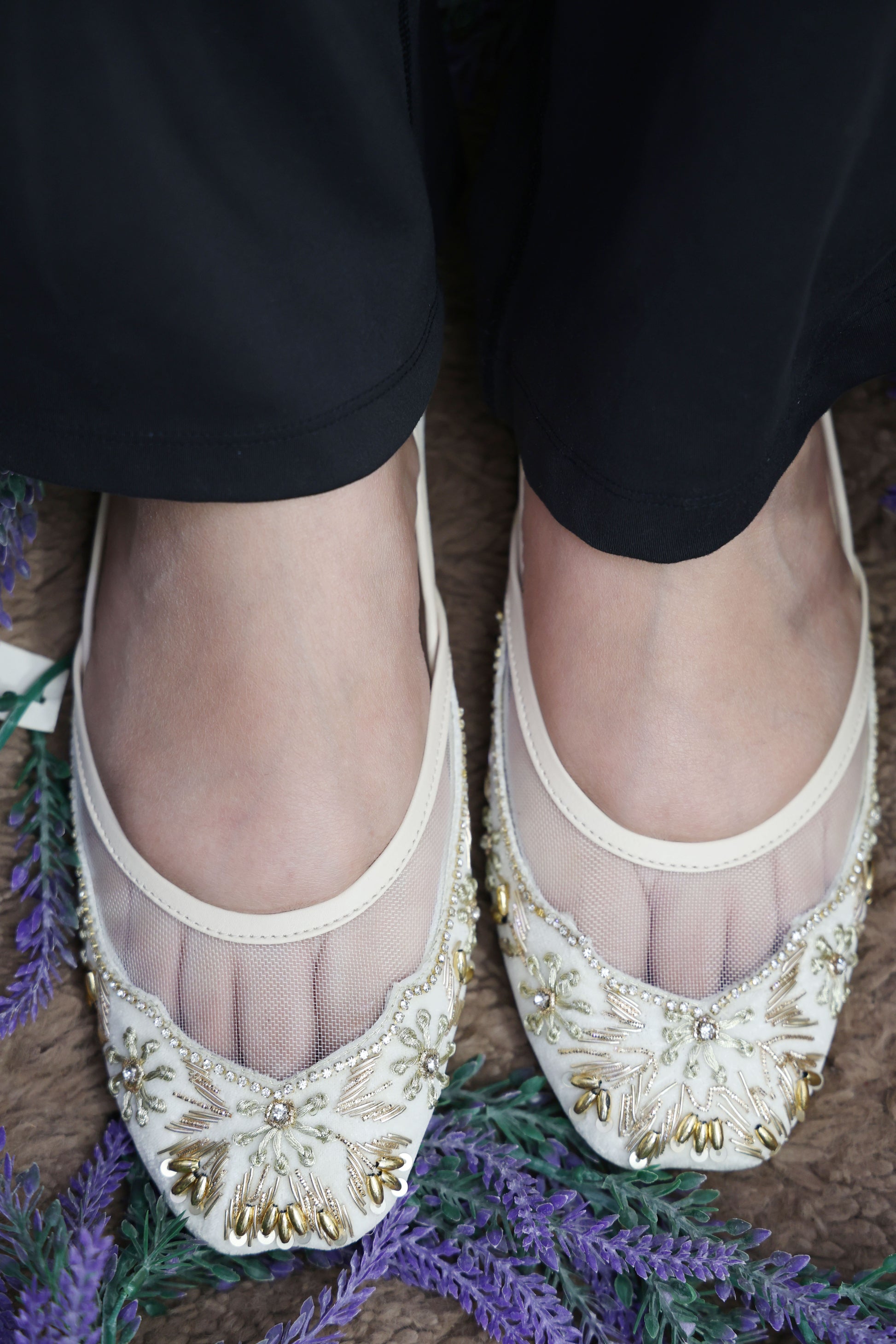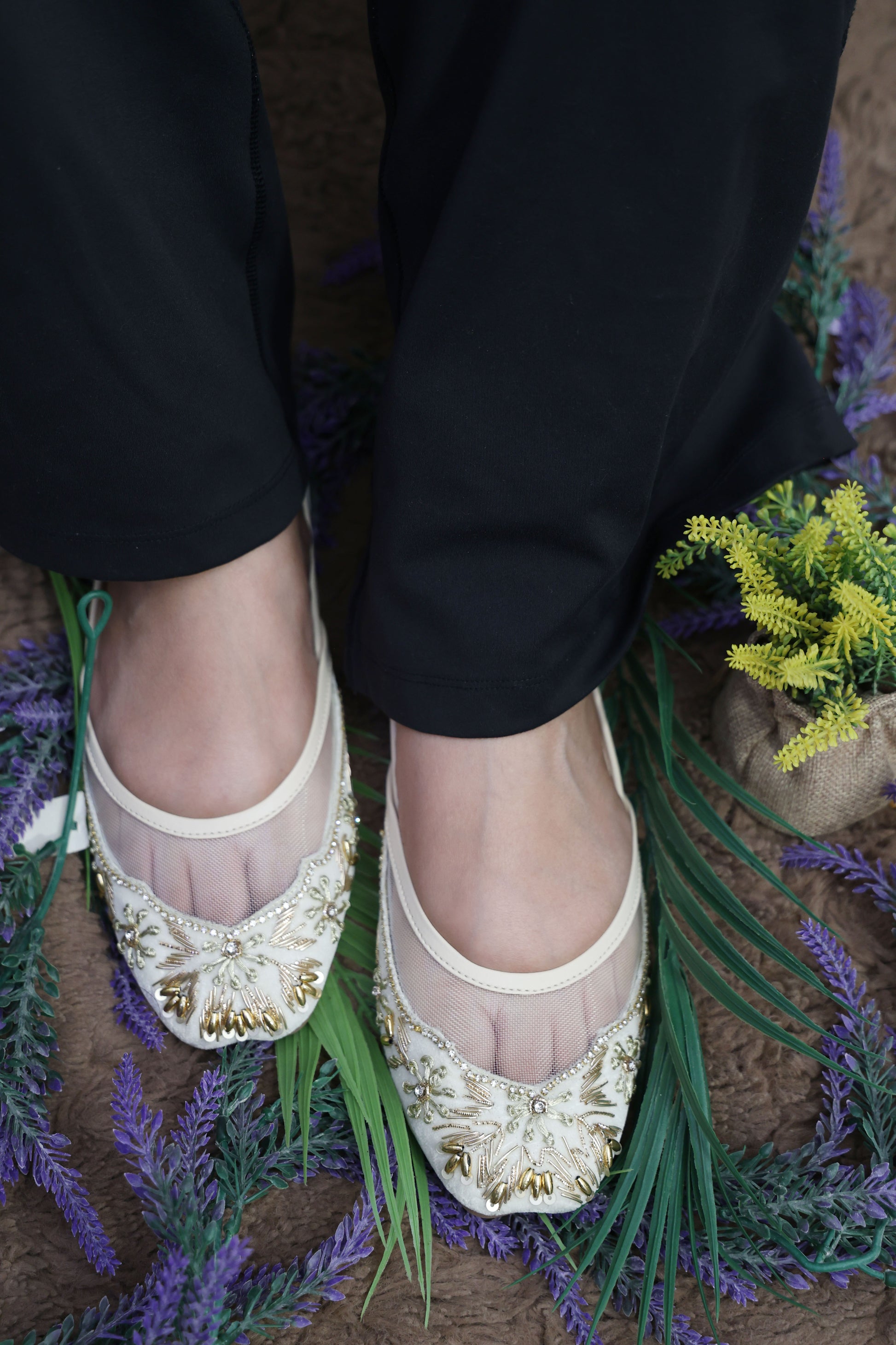 The White Zarina Jutti TT115 combines traditional craftsmanship with elegant design, offering a refined footwear option for formal and festive occasions. Crafted to provide both comfort and style, its timeless white hue pairs seamlessly with diverse outfits, making it a versatile addition to your wardrobe. Ideal for those who value both authenticity and sophistication in their footwear collection.